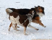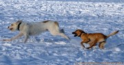 Herrlich, bei so schönem Schnee-Wetter wie Samstag kann Hund nur übermütig auf die Wiese stürmen, aber ...